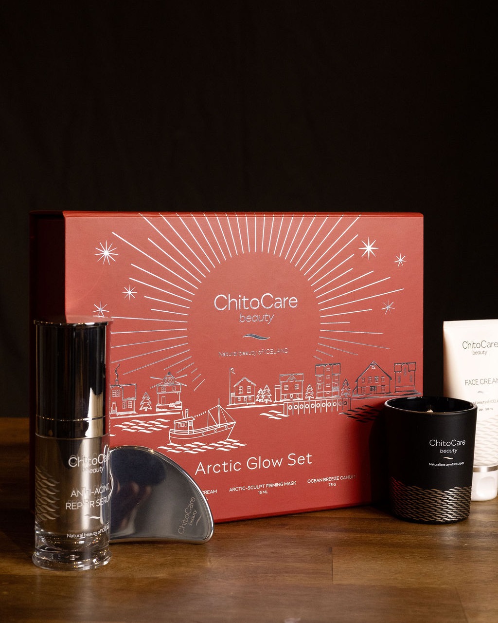 Jólaumbúðirnar fyrir ChitoCare beauty fyrir jólin 2025.